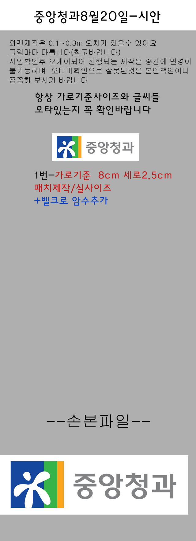 중앙청과8월20일-시안(패치제작+벨크로추가)