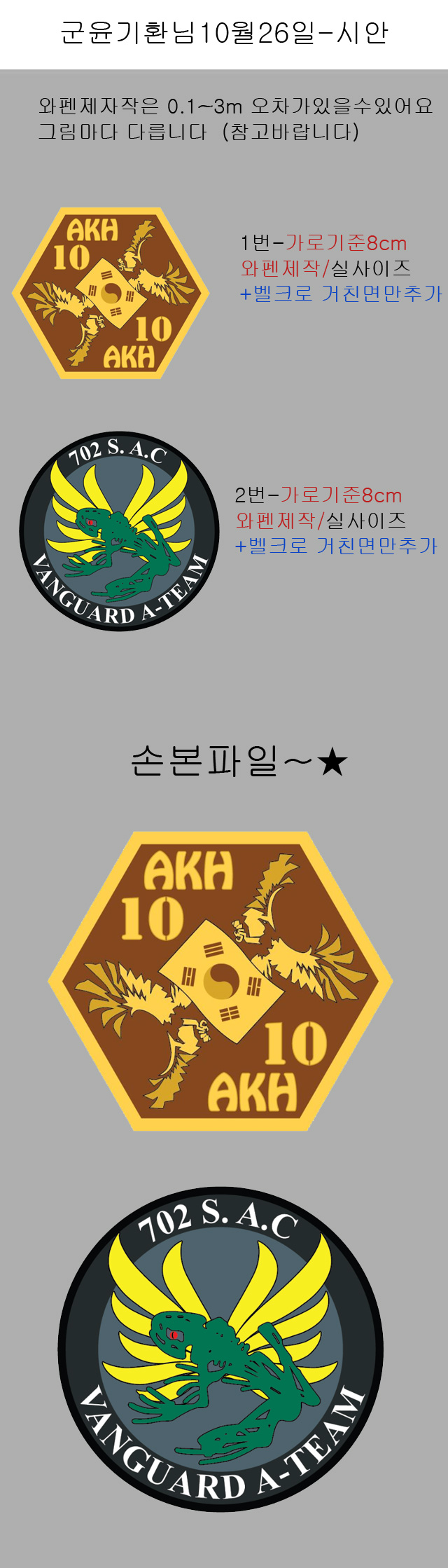 주문제작패치/관공서패치제작/컴퓨터자수와펜/밀리터리패치/낚시패치/야상/아플리케/전문디자이너/