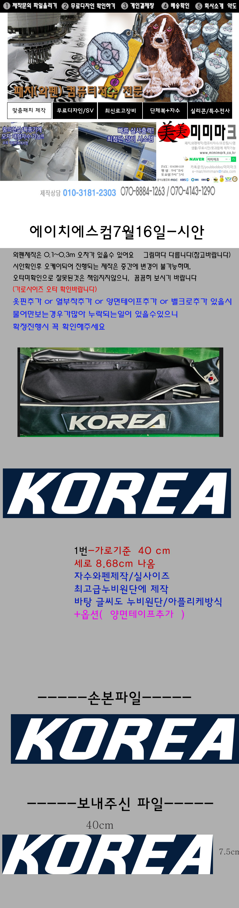 • 분류 ▶자수와펜/패치 제작문의
